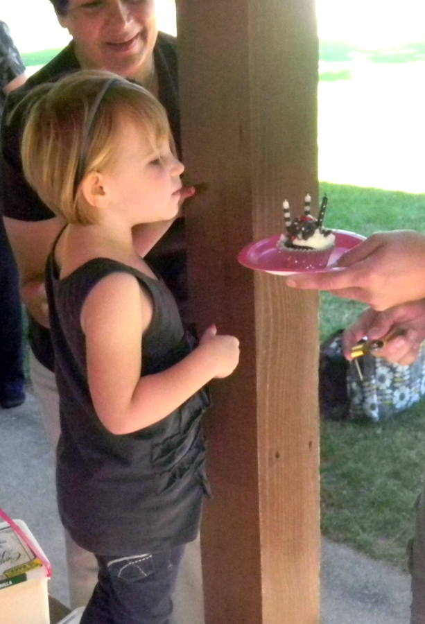 It was a little windy that day and it took a group effort trying to get the candles lit but we got it! For a couple of seconds anyway :)